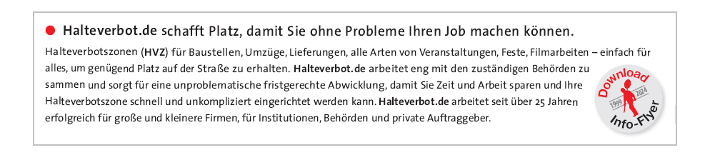 Direkt zu absperr-profi.de Download Info-Flyer Fragen & Antworten Jetzt Partner werden HVZ bestellen Individuelle Anfrage Warum Halteverbot.de